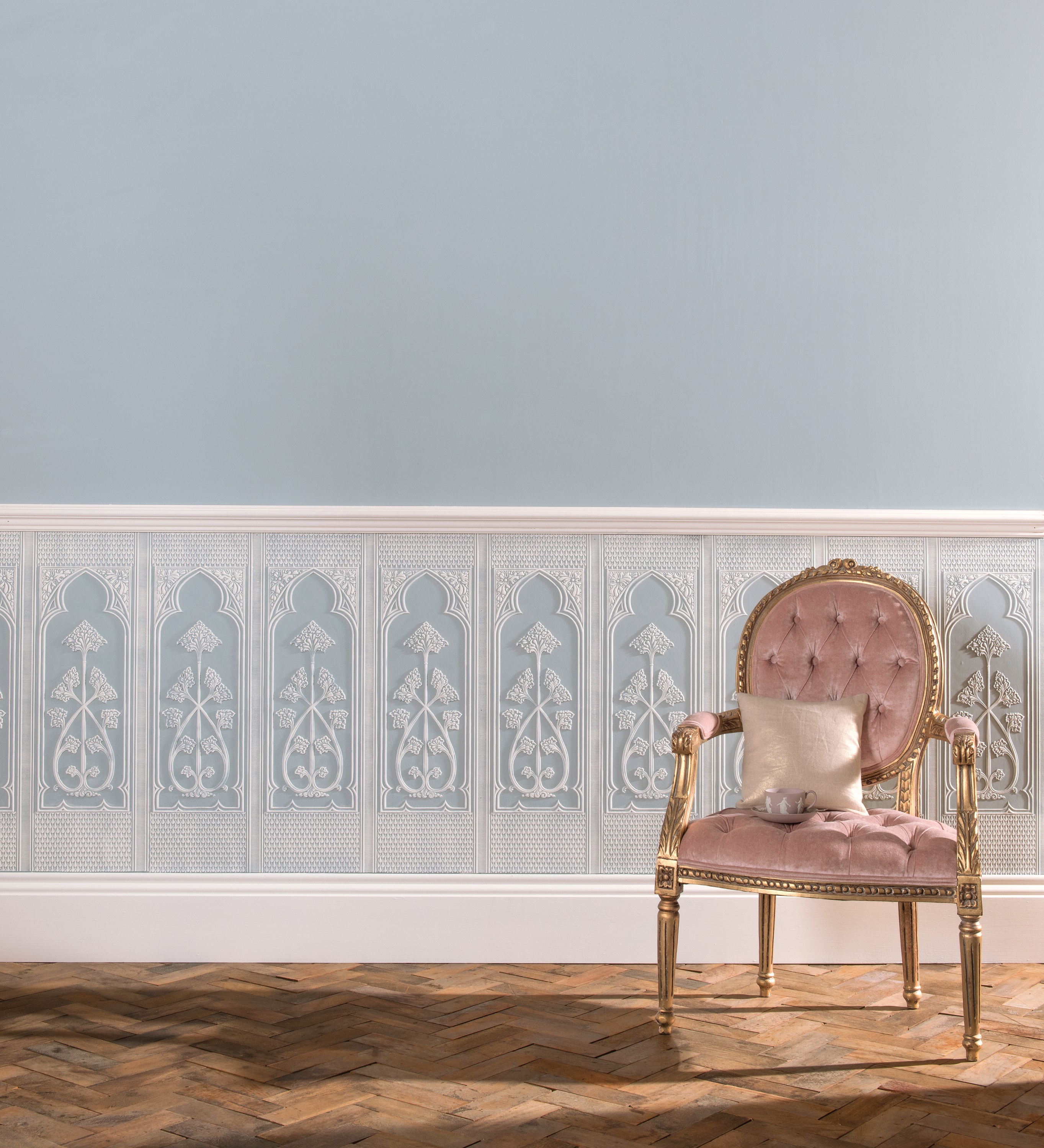 Характерной чертой для готического стиля, популярного с XII-ого по XVI-й век,, является декоративный узор со стрельчатыми арками. Они придают Gothic Dado средневековый колорит.