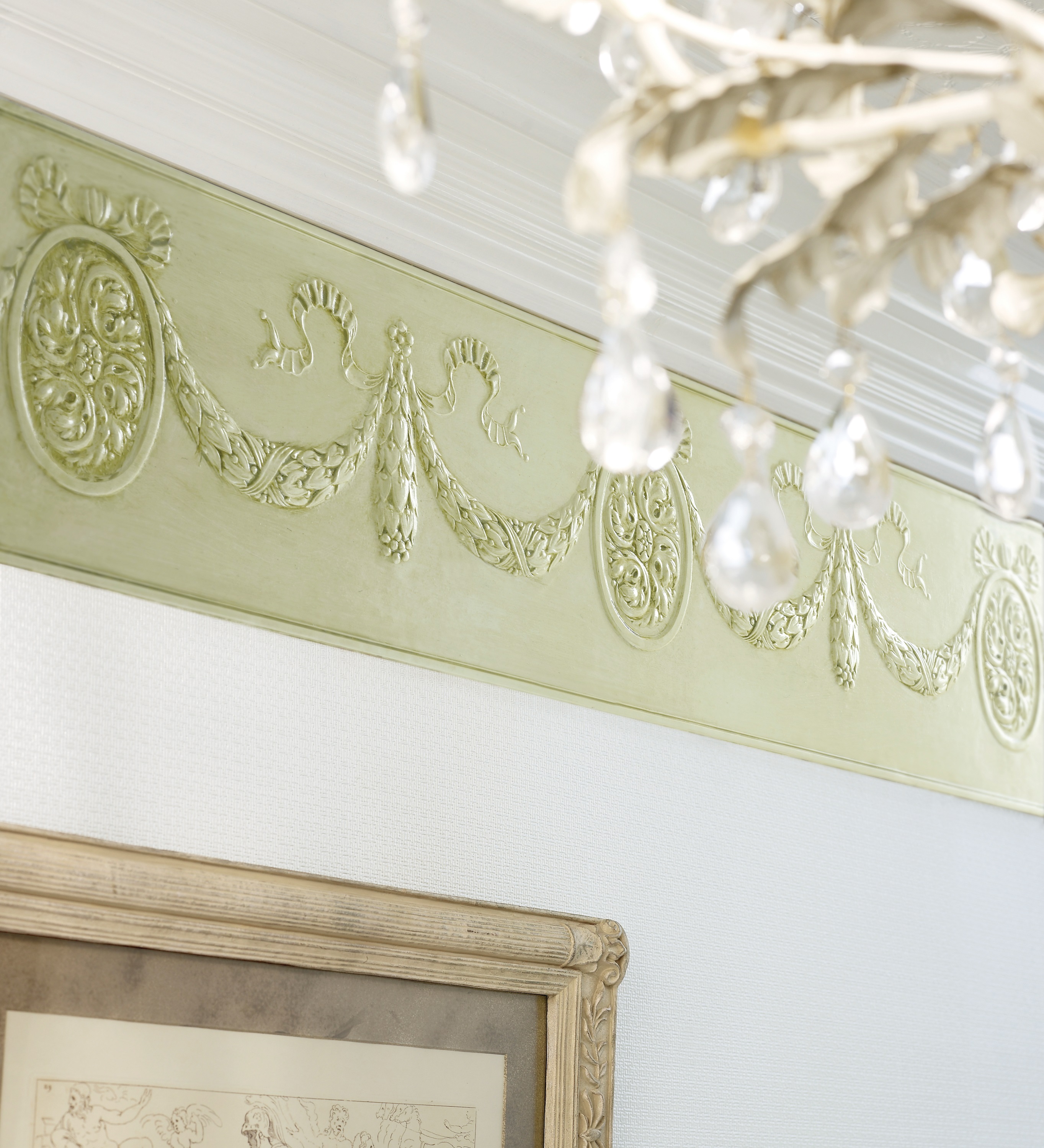 Обрамленные цветочными мотивами камеи составляют классический, но замысловатый и визуально интересный дизайн, выполненный в стилистике эпохи регентства.