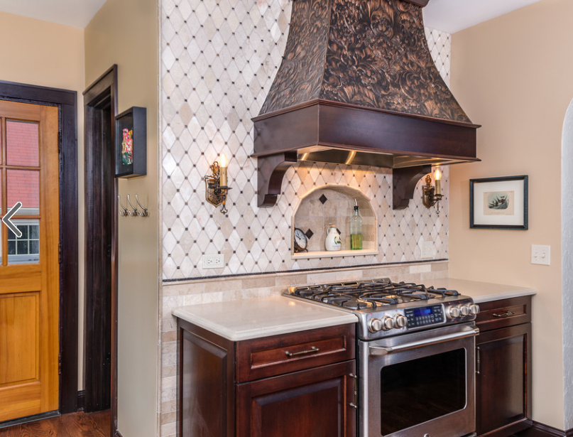 Мы просто влюблены в этот проект, в котором Lincrusta используется не только для стен. Вот что говорит хозяйка дома Мэри: «Я полюбила Lincrusta много лет назад, когда мне установили панели Edvardian в дамской уборной комнате, прилегающей к кухне. Я решила, что хочу выклеить Lincrusta в своей новой кухне. Наша цель состояла в том, чтобы кухня отражала стиль и возраст дома, Lincrusta была идеальным решением для этого! Гарен (дизайнер Hawthorn Development Group) предложил украсить этим материалом кухонную вытяжку, и это была блестящая идея! Это центральный объект кухни, и меня всегда спрашивают, из чего он сделан. Не верят, что это не металл. Я специально оставила образец покрытия в качестве доказательства для тех, кто не верит».